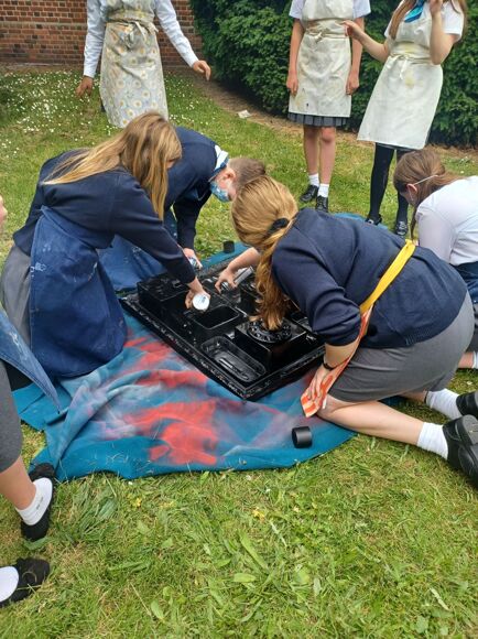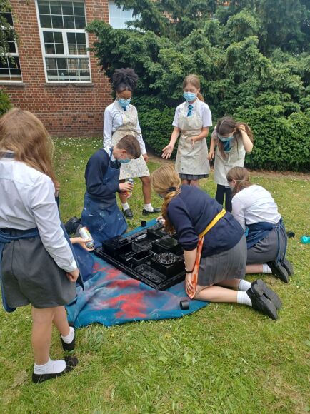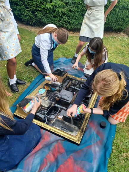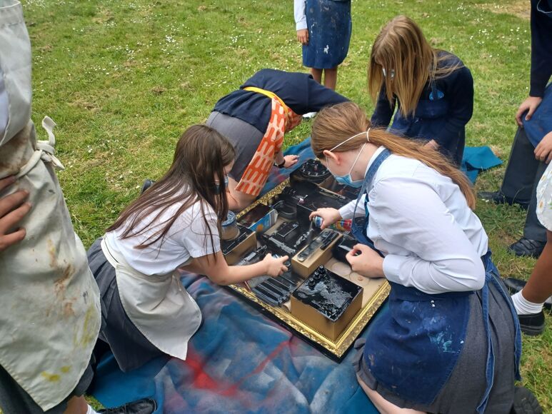 The theme for Art club this term was 'construction'. Students looked at the work of Louise Nevelson and then created their own large scale sculpture using junk modelling and spray paint.