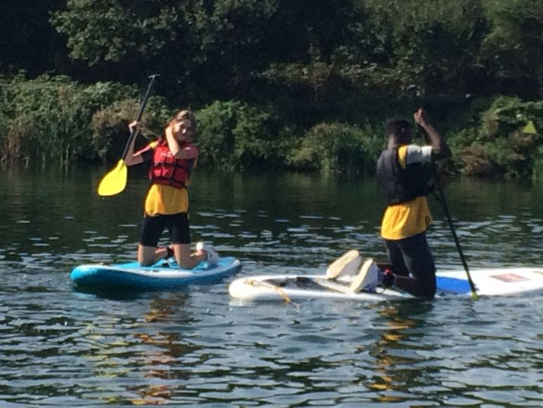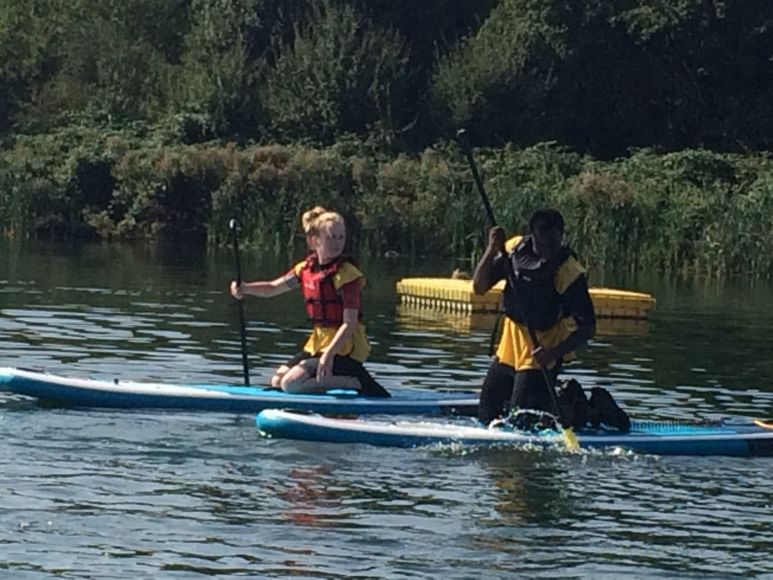 We were split into two groups and set off to complete three physical challenges to develop our teamwork and communication skills. These activities were paddle boarding, high ropes/rock climbing, and dirt boarding.